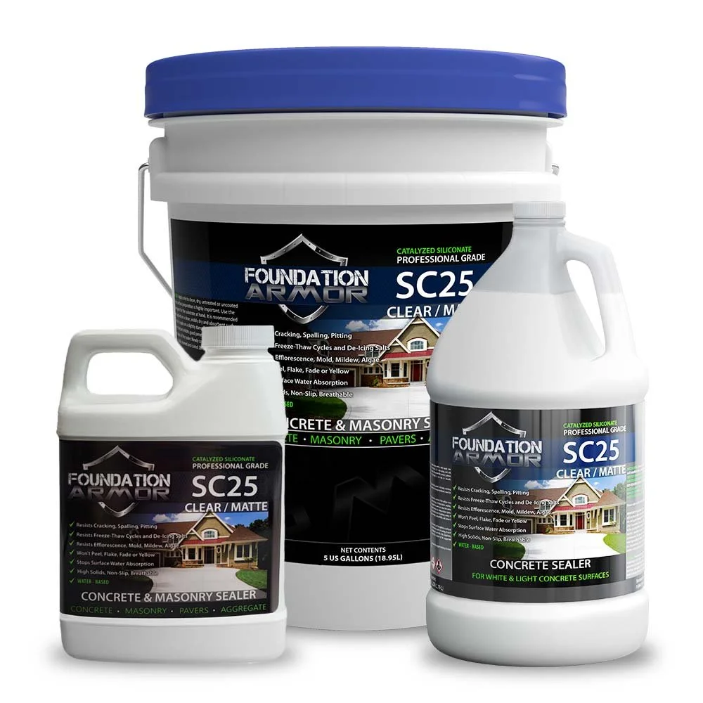 The Armor SC25 is a water based siliconate water repellent sealer for unsealed white or light concrete surfaces.